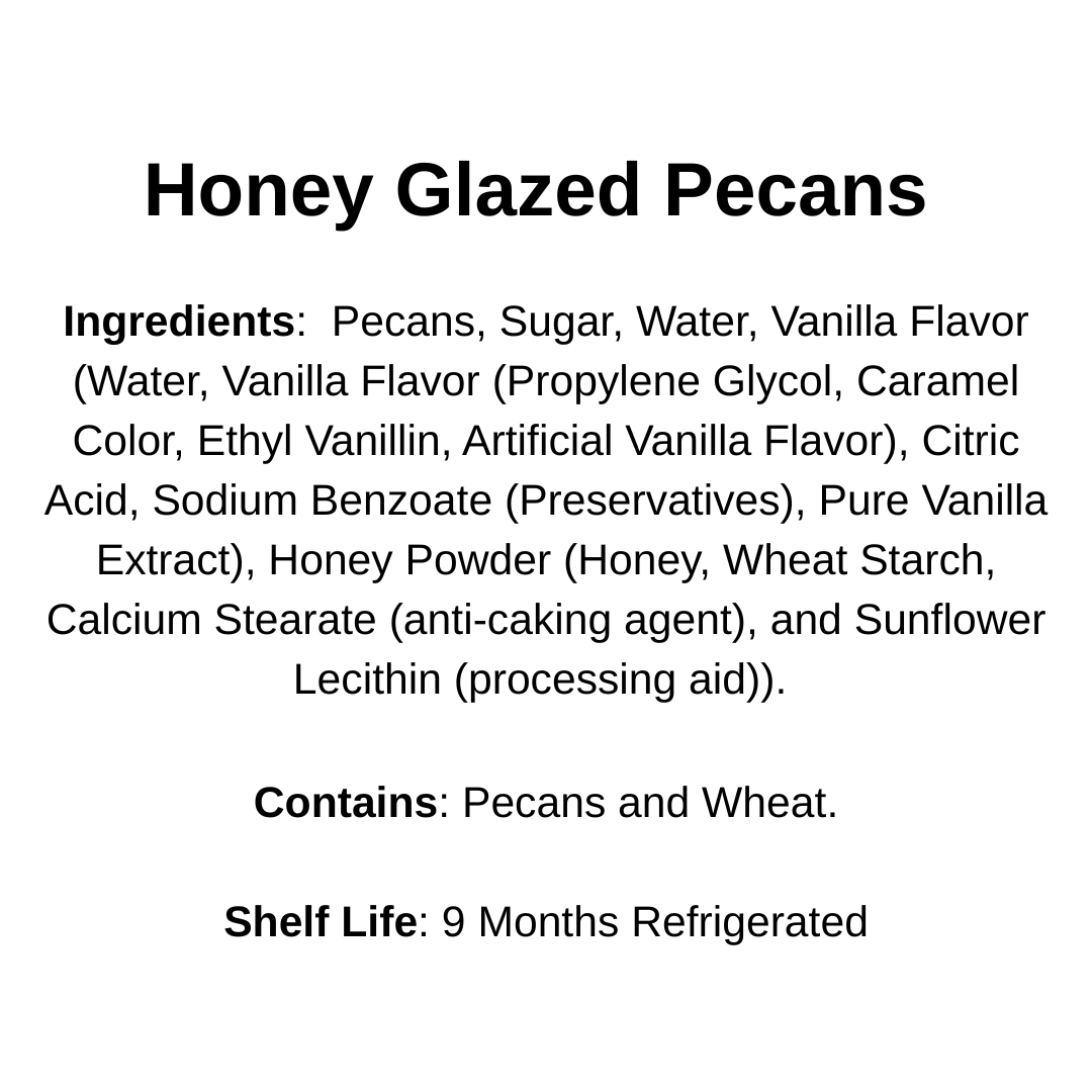 | I recently made a stop while on my way to Marble Falls. I often drove by but couldnt stop. So glad I did this time. Purchased the Honey glazed pecans and a scented Pumpkin Pecan candle. I nibbled on the pecans and had to stop before I ate the whole bag. These are so addictive to eat. Planning on ordering more. The best ever Honey Glazed Pecan! |