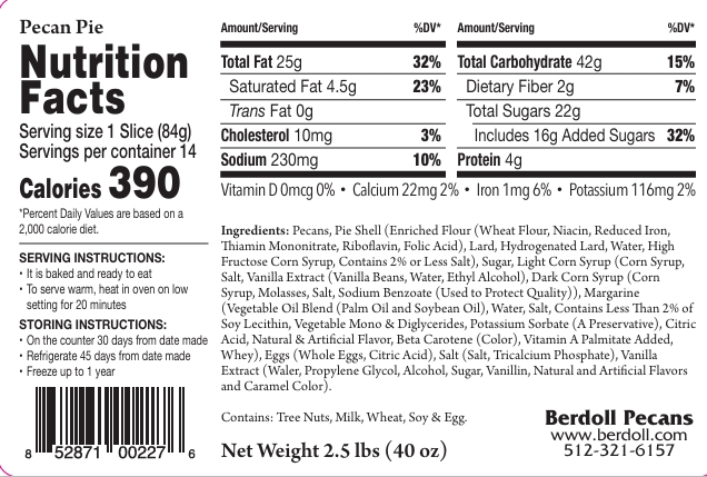 | We stopped in and decided to get a pecan pie. While not a big fan of pecan pies.... I must say that this one was delicious. Found out that we can freeze unused portions as well. Needless to say, we froze half of the pie but will need to remove it sooner than anticipated due to how fab it was. We will be sending some of these pies out to family and friends moving forward. Thank you for a great product! |